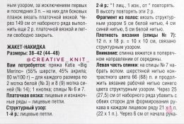 Рукодельное изделие спицами с изысканным жаккардовым орнаментом. Мягкая текстура пряжи и элегантный узор на манжетах придают изделию особый шарм. Размер(ы): XS(...