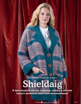 Начнем с больших коричневых пуговиц, которые добавляют уют и винтажный шарм. Это длинное пальто связано из теплой пряжи, а полосатый узор и контрастный воротник создают стильный и современный вид.
