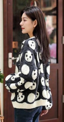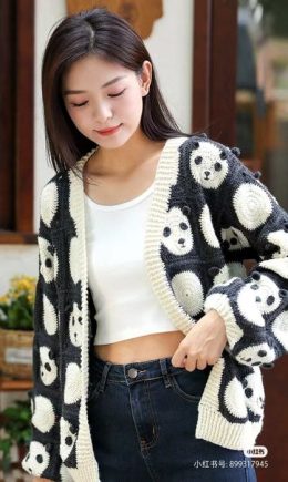 Забавный кардиган из мотивов с мордочкой панды