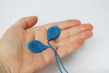 Плавники (2 детали) 1 ряд: 6сбн в кольцо амигуруми или в воздушную петлю. 2 ряд: (1 сбн, пр) – 3 раза (9)3 ряд: (2 сбн, пр) – 3 раза (12)4 ряд: (3 сбн, пр) – 3 раза (15)5 ряд: 15 сбн6 ряд: (3 сбн, уб) – 3 раза (12)7 ряд: (1 сбн, уб) – 4 раза (8)8 ряд: 8 сбн9 ряд: 4 убавкиНить обрезать, оставив кончик для пришивания.