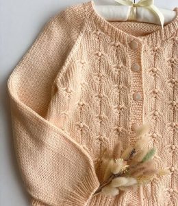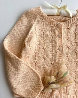 Когда ты хочешь одеть малыша в облачко, но небо не в моде! Этот милый вязаный кардиган с пуговицами и нежным узором из косичек выглядит как настоящий шедевр рукоделия. Мягкий персиковый цвет и аккуратные пуговки делают его идеальным выбором для маленького модника.