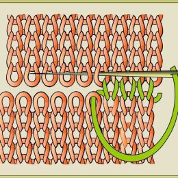 Мудрость вязания в том, что каждая петля связана с другой, создавая полотно жизни. Этот узор демонстрирует искусство соединения: оранжевые петли создают основу, а зелёная нить добавляет акцент, превращая простую ткань в произведение искусства.
