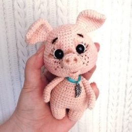 Вы только посмотрите на этого милого поросёнка! Разве он не очаровашка? Особенно мне нравится его забавный носик и голубой кулон в виде перышка. Кажется, что у него есть своя история и характер.
