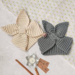 Две красивые повязки на голову, выполненные крючком. Они имеют интересный дизайн в виде «ушек» или «банта», который делает их уникальными и стильными.