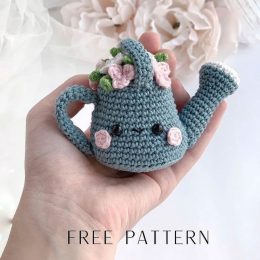 Ох, знаете, эта вязаная лейка явно знает толк в цветах и в хорошем настроении! Только взгляните на её милую улыбку и румяные щёчки — сразу хочется поделиться с ней своим садоводческим секретом. А эти нежные цветочки на крышке просто очаровательны!