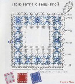 Простой вариант прихватки с вышивкой! Хорошо для тех кто только начинает вязать.