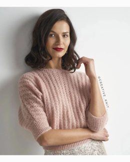 Пудровый свитер с ажурным узором