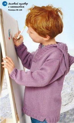 Вязаный спицамиуловер с капюшоном для мальчика