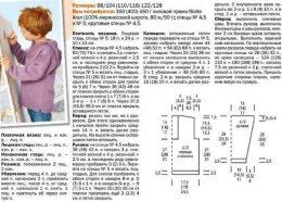 Размеры: 98/104 (110/116) 122/128 Вам потребуется: 350 (400) 450 г лиловой пряжи Rialto Aran (100% мериносовой шерсти, 80 м/50 г); спицы № 4.5 и № 5; круговые спицы 4.5.