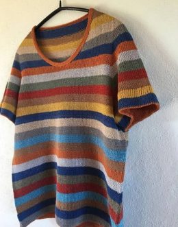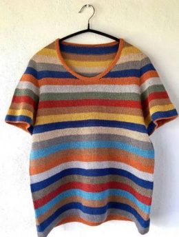 Пуловер с коротким рукавом и полосатым узором