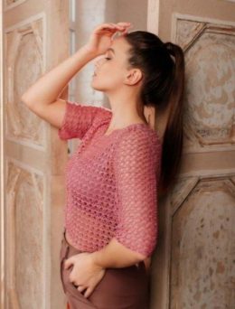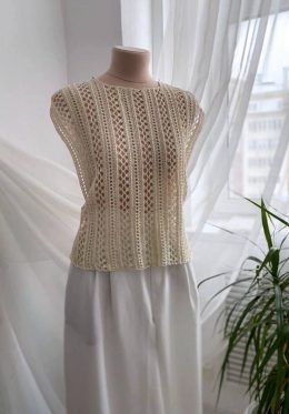 Нежный топ, связанный крючком из множества квадратных мотивов с ажурным цветочным узором. Легкая, дышащая структура и ровные швы делают изделие комфортным и сти...