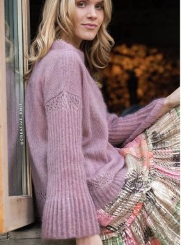 Этот очаровательный свитер, выполненный в нежно-розовом цвете, напоминает мне о забавном детстве, когда мы собирали пух одуванчиков на лужайках. Фасон свитера свободный, с изящными ажурными вставками на рукавах и плечах. Мягкая текстура и воздушная вязка делают его идеальным для прохладных вечеров. Стиль свитера гармонирует с разноцветной юбкой, создавая образ, полный легкости и игривости.