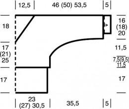 Спинка: набрать 49 (57) 65 п. и связать между кром. 17 см резинкой, начиная и заканчивая 1 изн. Затем прибавить с обеих сторон 1 п. = 51 (59) 67 п. и вязать ажурным узором. Через 7,5 см = 14 р. (9,5 см = 18 р.) 11,5 см = 22 р. от резинки прибавить для рукавов «летучая мышь» с обеих сторон 1 п., в следующем 4-м р. 1 х 1 п. и в каждом 2-м р. 2 х 1,1 х 2,1 х 3, 2 х 4, 1 х 5, 1 х 8 и 1 х 9 п. = 129(137) 145 п., включая прибавляемые петли в ажурный узор. Через 35 см = 66 р. (39 см = 74 р.) 43 см = 82 р. от резинки все петли закрыть, при этом средние 27 п. образуют вырез горловины, внешние 51 (55) 59 п. с каждой стороны – плечи-рукава.