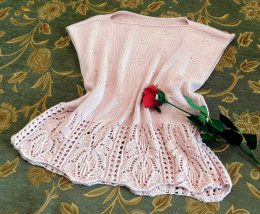 Эта элегантная туника выполнена из нежной розовой пряжи и украшена изысканным ажурным узором по краю. Уникальность изделия заключается в сочетании простоты и утонченности, что делает его идеальным выбором для любого случая. Внимание к деталям и высокое качество исполнения подчеркивают мастерство рукодельницы.