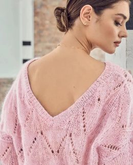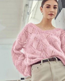 Обратите внимание на изысканный ажурный узор, который придаёт изделию воздушность и легкость. Этот свитер станет отличным дополнением вашего гардероба, добавляя в него нотку элегантности и утонченности.