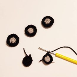 Внутренняя часть (4 шт.) Вяжется аналогично внешней части колеса, но только чёрной пряжей.