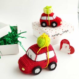 пряжа красного, белого, чёрного, серого оттенков. Немного жёлтой пряжи для фар. Для маленькой машинки я использую пряжу Yarn Art Jeans, а для большой Yarn Art Jeans Plus (но только для корпуса!! Колеса и фары я вяжу из Yarn Art Jeans).