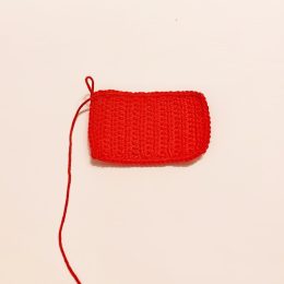 Меняем нить на красную. 22-й ряд вяжем за заднюю петлю.