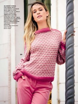 Этот вязаный свитер словно создан для объятий — мягкий, словно облако, и теплый, как сердечное прикосновение. Узор изящно напоминает ракушки, а контрастная окантовка выделяет его среди других.