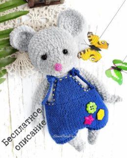 Символ года вязаная мышка (в год крысы). Однако они похожи внешне и могут подменять друг друга. Милый мышонок одет в очаровательные синие штаны.