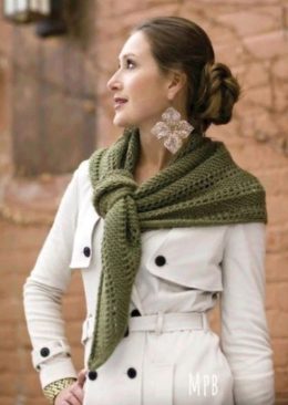 Эта шаль выполнена из мягкой пряжи с выразительным ажурным узором, создающим эффект объемной текстуры. Уникальная вязка придает изделию легкость и воздушность, а насыщенный оливковый оттенок подчеркивает элегантность и универсальность аксессуара. Особое внимание уделено аккуратным краям и плотной структуре, что обеспечивает комфорт и тепло.
