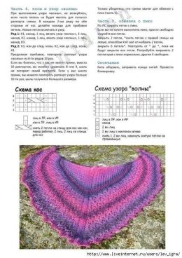 Нежный розовый снуд с изящным узором из объемных кос и воздушной ажурной вязкой. Идеально сохраняет форму благодаря плотному краю и легкости материала. Схема уз...