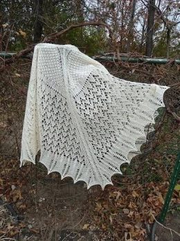 Элегантная вязаная спицами шаль с изящным узором в виде перьев, дополненная ажурной каймой. Уникальная форма и воздушная структура делают изделие легким и эффек...