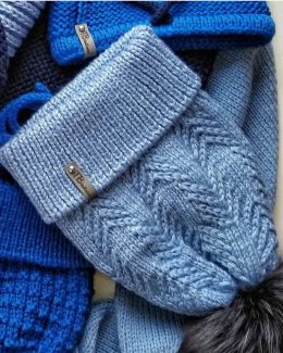 Мягкий капор нежно-голубого цвета с контрастными полосами и прозрачными вставками, создающими воздушный и стильный образ. Идеально согреет и дополнит повседневн...