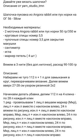 Шапочка-луковка из Angora rabbit или пух норки на ОГ 56 — 58см