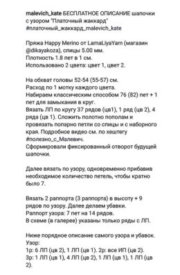 Описание шапки БРУСНИКА