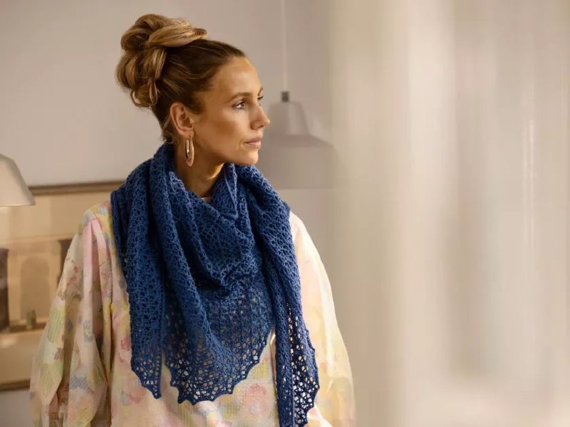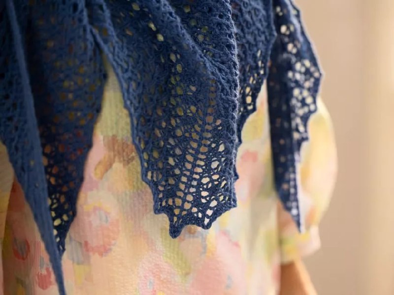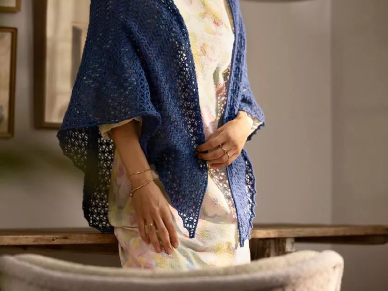 Синий ажурный палантин