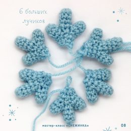Вяжем 6 больших лучиков. Т.е. повторяем с начала описания еще 5 раз.