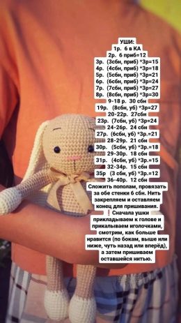 Его мягкие линии и нежные оттенки делают его идеальным компаньоном для детей и взрослых. Особое внимание уделено деталям: от аккуратно вышитых глаз до стильного бантика, который добавляет изюминку. Этот кролик не только красив, но и выполнен с любовью, что делает его настоящим произведением искусства.