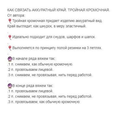 Способ вязания тройного кромочного края, который создаёт рельефный и объёмный эффект. Этот…