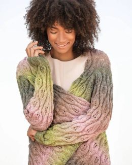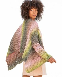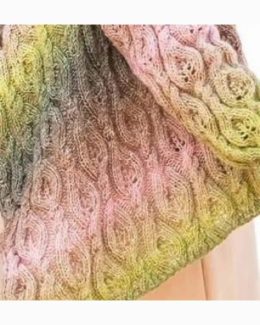 Этот рукодельный свитер выполнен в технике градиентного окрашивания с переходами от зелёного к розовому и серому. Свитер с длинными рукавами украшен сложным узором из кос, которые придают изделию объем и текстуру. Мягкая и уютная модель идеально подходит для прохладной погоды.