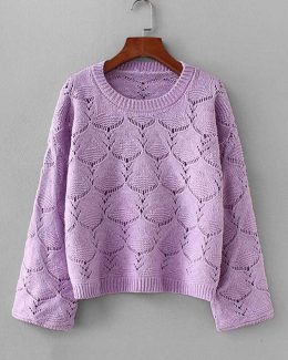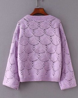 Этот свитер – словно облачко на плечах, только не забывает о моде! Его нежный лавандовый цвет и ажурный узор – идеальная пара для тех, кто хочет быть стильным, но готов к любым капризам погоды.