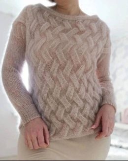 Этот мягкий и пушистый свитер — воплощение уюта и тепла. Великолепный узор косами создает эффект объемной текстуры, привлекая внимание и добавляя элегантности. Приятный бежевый оттенок и нежная пряжа делают его идеальным для прохладных дней, когда хочется окутаться комфортом.