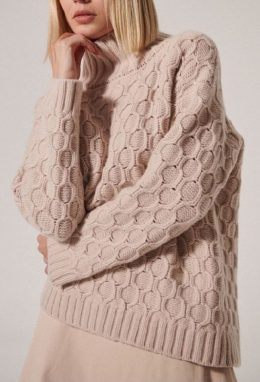 Какая прелесть! Этот вязаный свитер поражает своей мягкостью и теплом. Узор из объемных кос придаёт ему элегантность и стиль, а высокий воротник добавляет нотку уюта. Идеальный выбор для прохладных дней!