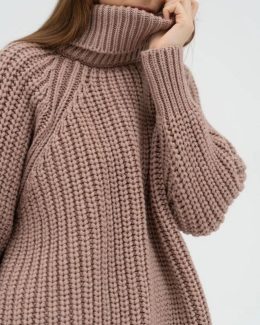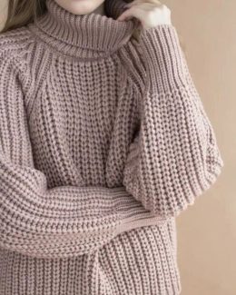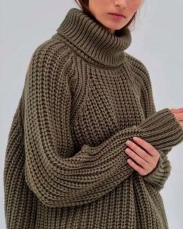 Этот объемный свитер с высоким воротником и крупной вязкой скрывает нечто удивительное — стильные красные очки! Свободный крой и текстурная вязка подчеркивают уют и комфорт, а необычная деталь — очки с легким оттенком ретро — добавляют образу игривую нотку.
