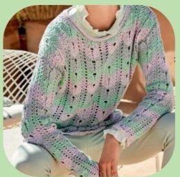 Ажурный джемпер из меланжевой пряжи пастельных тонов.