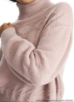Этот нежно-розовый свитер, словно облако, обнимает вас теплом и заботой. Его высокий воротник и изящные узоры добавляют изысканность, а мягкая вязка создает уют и комфорт. Идеальный компаньон для осенних прогулок и домашних вечеров.