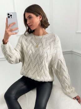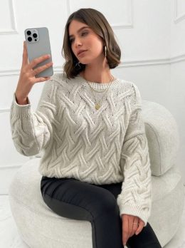 Теплый и уютный свитер с выразительным плетеным узором, который добавит стиль и комфорт в холодные дни. Идеален для создания модного и практичного образа. Пусть...