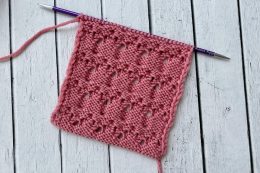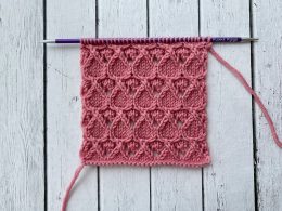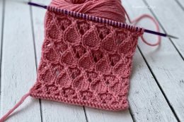 Вязаный образец с изящным плетением ромбов, создающим объем и текстуру, идеально подходит для декоративных деталей и стильных акцентов в изделиях. Узор спицами