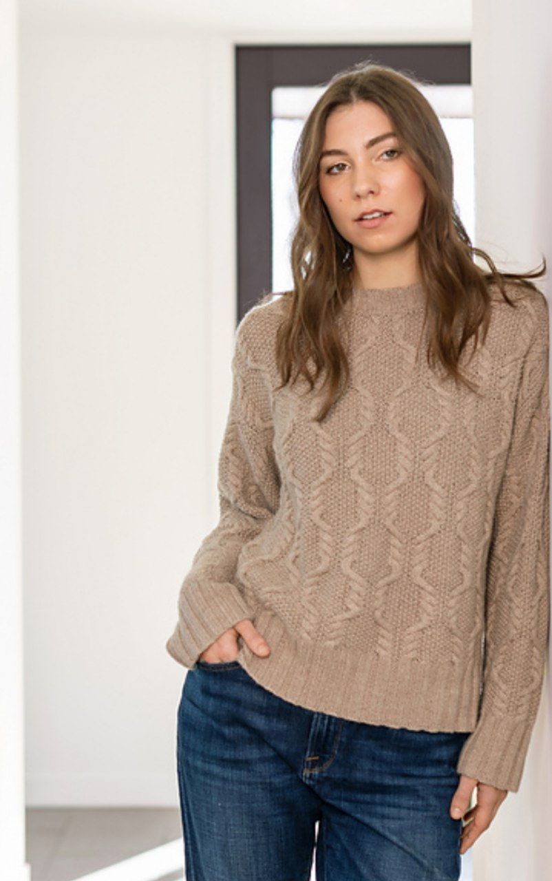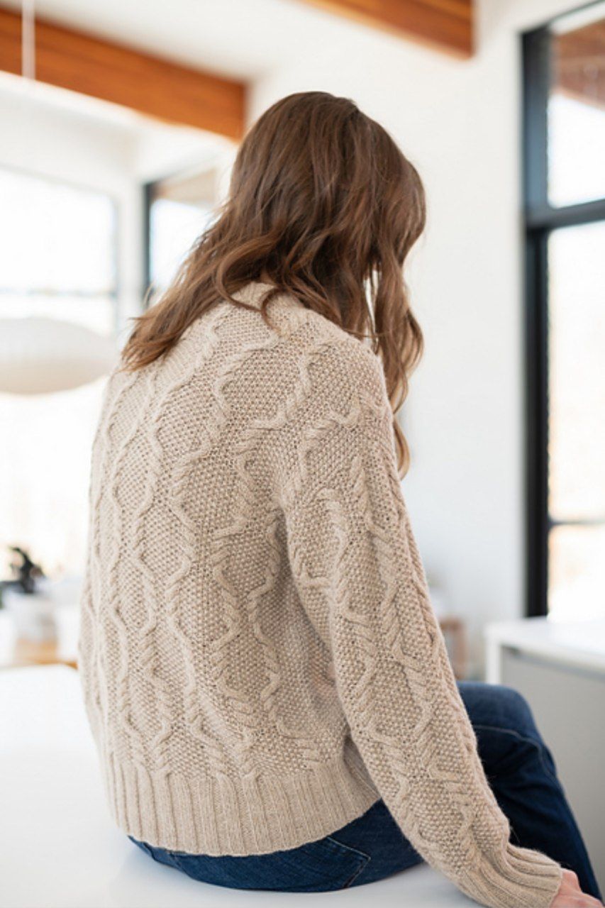 Теплый и уютный свитер с оригинальным объемным узором из переплетенных кос, создающий эффект живой текстуры и подчеркивающий стиль и индивидуальность. Идеален для холодных дней и комфортных вечеров дома.