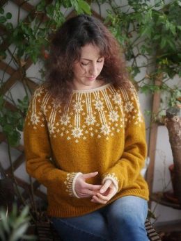 Этот свитер выполнен с использованием традиционного скандинавского узора, который придаёт ему уникальный характер. Мягкая шерсть и сложные геометрические мотивы создают уют и стиль. Идеально подходит для прохладных дней, добавляя нотку элегантности и тепла.