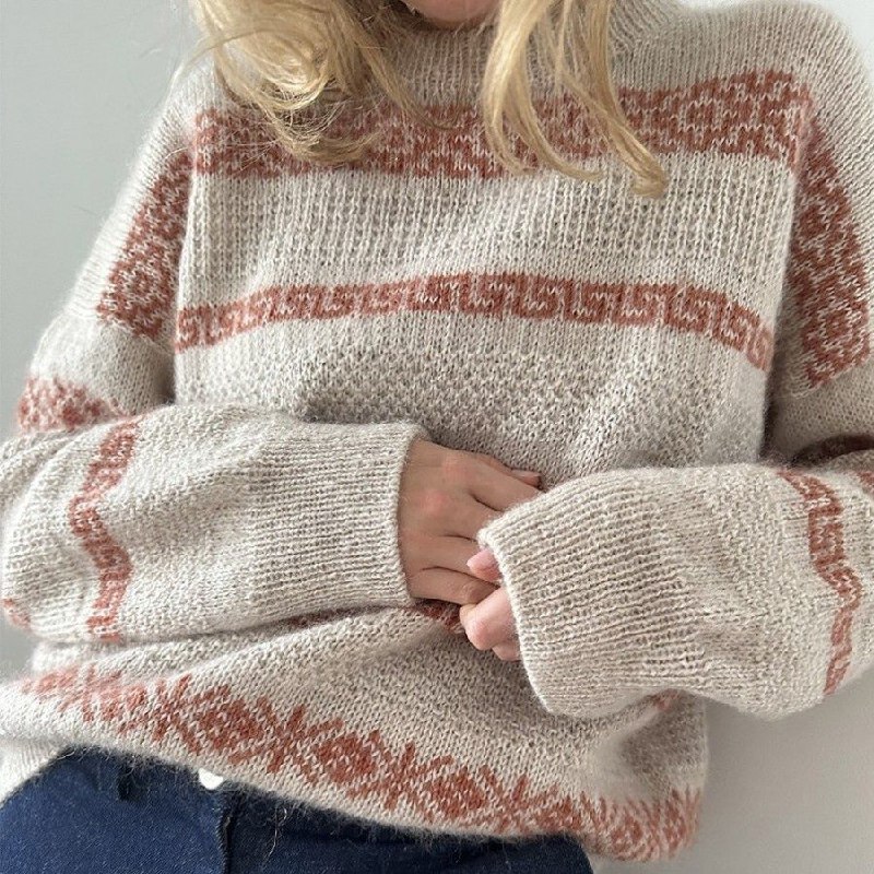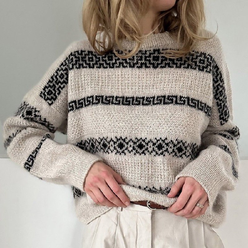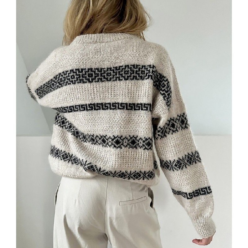 Мягкий и уютный свитер с оригинальными черно-белыми геометрическими полосами, которые добавляют образу игривости и тепла. Идеально для холодных дней и настроения на комфорт.