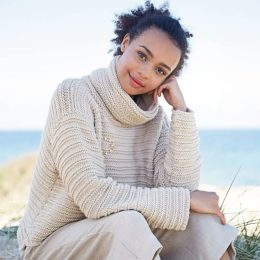 Этот свитер отличается уютным высоким горлом и текстурной вязкой, создающей стильный и комфортный образ. Идеально подходит для прохладных дней на свежем воздухе.