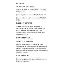 Теплый и уютный свитер с выразительным плетеным узором, который добавит стиль и комфорт в холодные дни. Идеален для создания модного и практичного образа. Пусть...