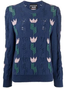 Как гласит мудрость, в каждой детали кроется красота. Этот рукодельный джемпер от Moschino – воплощение изящества и творчества. Мягкая ткань, украшенная уникальным узором в виде тюльпанов, создает атмосферу весеннего сада. Джемпер предлагает гармонию цветов – глубокий синий фон с нежными розовыми и зелеными акцентами. Каждая петля связана с любовью и вниманием к деталям, что делает изделие настоящим шедевром.