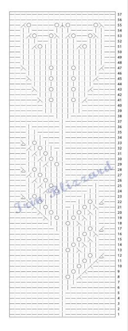 Вязаный образец с изящным плетением ромбов, создающим объем и текстуру, идеально подходит для декоративных деталей и стильных акцентов в изделиях. Узор спицами